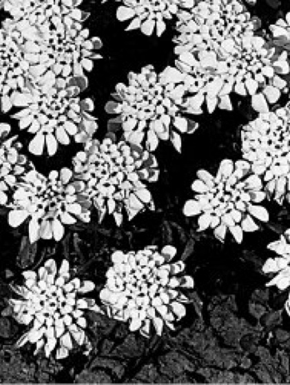 Schleifenblume, Bauernsenf, Iberis, Gattung der Kreuzblütler mit rund 30, überwiegend auf das Mittelmeergebiet beschränkten Arten. Niedrige, 1jährige Kräuter oder Stauden mit linealen bis eiförmigen Blättern und in weiß, rot oder violett gefärbten (Dolden-)Trauben angeordneten Blüten ( vgl. Abb. ), deren Krone 2 größere äußere sowie 2 kleinere innere Blütenblätter aufweist. Mehrere Arten werden bei uns als Gartenzierpflanzen kultiviert. Hierzu gehört Iberis sempervirens, eine aus den Gebirgen Südeuropas und Kleinasiens stammende, dichte Rasen bildende Steingartenpflanze mit schmal-lanzettlichen Blättern sowie weißen, bis 5 cm breiten Blütenständen.