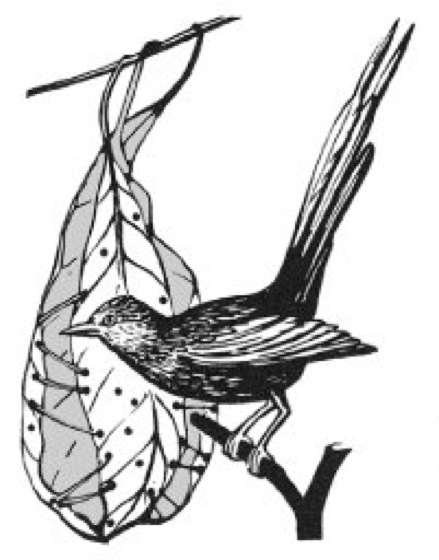 Schneidervögel, Bezeichnung für Grasmücken der Gattungen Orthotomus und Phyllergates, die mit 7, vorwiegend grünlich gefärbten Arten in Südostasien (Obstplantagen, Gärten, Wälder) verbreitet sind; bis ca. 20 cm lang, mit spitzem Schnabel und kurzen, runden Flügeln. Sie legen Baum-Nester ( ö vgl. Abb. ) aus 1 oder 2 mit Pflanzenfasern tütenförmig vernähten großen Blättern an.