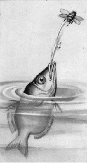 Schützenfische, Toxotidae, Familie der Barschfische mit 6 südostasiatischen Arten; leben an der Oberfläche von Brack- oder küstennahem Süßwasser und können durch Zusammenpressen der Kiemenräume durch die Kiemendeckel über eine von der Zunge abgedeckte Rinne im Gaumendach einen bis 1 m langen Strahl aus Wassertropfen auf kleine, über Wasser an Pflanzen sitzende Beutetiere schießen ( ü vgl. Abb. ) und diese zum Absturz bringen. Hierzu gehört der indoaustralische, bis ca. 20 cm lange Schützenfisch (Toxotes jaculatrix, Toxotes jaculator), der vor allem in Mangrovegebieten und in einmündenden Flüssen vorkommt; mit großen Augen und einem schräg nach oben gerichteten Maul. Er ist ein Aquarienfisch, der allerdings nur aus Freilandfängen in den Handel kommt. Werkzeuggebrauch; Farbtafel Fische IX.