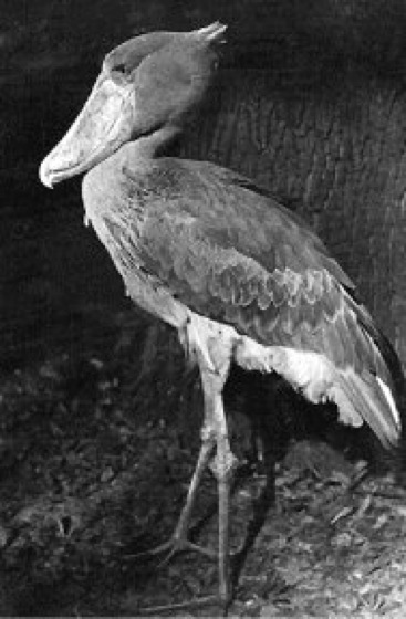 Schuhschnäbel, Balaenicipitidae, Familie der Stelzvögel mit nur 1 Art, dem Schuhschnabel (Balaeniceps rex; ä vgl. Abb. ), den die Araber Abu Markub („Vater des Schuhs“) nennen. Der 1,2 m hohe graue Vogel kommt in Sumpfgebieten des tropischen Afrikas vor und fällt durch seinen mächtigen Schnabel mit scharfkantigen Rändern auf, der an die Form eines Holzschuhs erinnert. Damit fängt der Vogel, vor allem nachts, Fische, Frösche und Schnecken. Einzelgänger; kann wie die Störche mit dem Schnabel klappern. Haufenförmiges Pflanzennest in sumpfigem Gelände; 2 Eier; die Jungen werden von beiden Altvögeln mit hervorgewürgter Nahrung gefüttert. Afrika I .