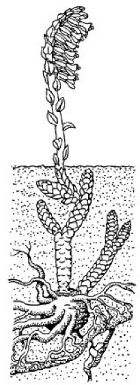 Schuppenwurz, Lathraea, Gattung der Braunwurzgewächse mit 7 in Europa und Asien heimischen Arten. In Mitteleuropa nur die zerstreut in Auen- und Schluchtwäldern wachsende Rotbraune Schuppenwurz (Lathraea squamaria;vgl. Abb. und Farbtafel Braunwurzgewächse I). Die bis 20 cm hohe, chlorophyllfreie Staude besitzt einen weit verzweigten, dicht mit fleischigen Schuppen besetzten Wurzelstock (Zwiebelsprosse) sowie im Frühjahr erscheinende, rötlich-weiß gefärbte, fleischig-saftige, aufrechte Triebe mit schuppenförmigen Blättern. An ihren Enden stehen in dichter, zunächst nickender, einseitswendiger Traube die erst nach knapp 10 Jahren oder später erscheinenden Blüten. Sie sind rosa gefärbt und besitzen eine 2lippige Krone mit 3lappiger Unterlippe. Die Schuppenwurz ist ein Vollparasit (Holoparasiten), der die zu seiner Entwicklung nötigen Substanzen, vor allem im Frühjahr, den Wurzeln von Bäumen oder Sträuchern entzieht und speichert. Hierzu werden die Wurzeln der Wirtspflanzen (Hasel, Erle, Ulme, Eiche, Buche und andere) von Saugwurzeln umschlungen und über Haustorien angezapft. Um die für die Nährstoffaufnahme nötige Saugkraft zu erzeugen, scheidet die Schuppenwurz über zahlreiche, in ihren Schuppenblättern befindliche Hydathoden aktiv Wasser aus.