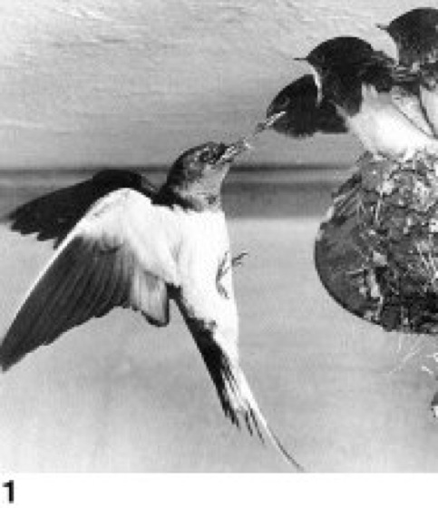 Abb. 1 Rauchschwalbe (Hirundo rustica) bei der Fütterung der Jungen;