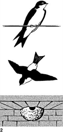 Abb.2 Mehlschwalbe (Delichon urbica), unten Nest