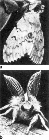 a Weibchen, b männliches Tier mit den deutlich gekämmten Fühlern