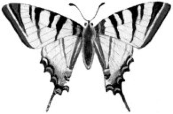 Segelfalter, Iphiclides podalirius, von Nordafrika bis Eurasien verbreiteter, prachtvoller und bei uns seltener Ritterfalter ( vgl. Abb. ), in Mitteleuropa nördlich bis zu den Mittelgebirgen bodenständig; Spannweite um 80 mm, Flügel hellgelb mit schwarzer Bänderung, Hinterflügel lang geschwänzt; Flug schnell, aber auch elegant segelnd; auf sonnig warmen, buschigen Hängen mit Blüten und Krüppel-Schlehenbeständen; gerne wie der verwandte Schwalbenschwanz zur Partnerfindung um Bergkuppen („hilltopping“); saugen an Disteln, Salbei und anderen Pflanzen, aber auch an feuchter Erde und Kot. Die gebuckelten, grünen Raupen fressen an Einzelbüschen von Schlehen, Weißdorn, im Süden auch an Obstbäumen; Gürtelpuppe braun oder grün, überwintert. Durch Verkleinerung und Verschwinden der Biotope und Intensivierung im Obstbau in Deutschland im Bestand stark gefährdet.