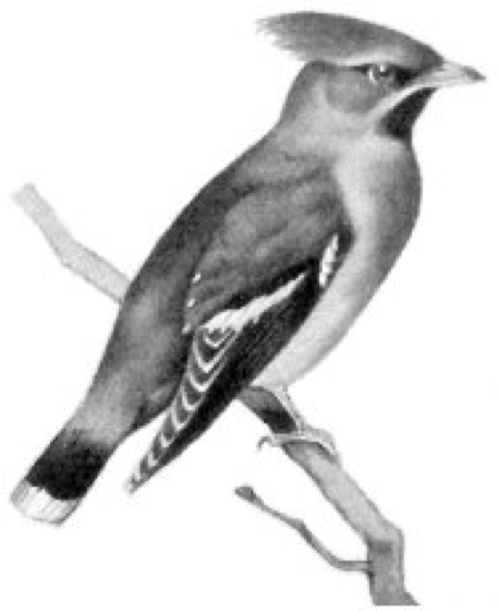 Seidenschwänze, Bombycillidae, Familie der Singvögel mit 3 Arten, mit seidig weichem Gefieder; ernähren sich außerhalb der Brutzeit von Beeren und anderen Früchten; der breite, kräftige Schnabel ist hieran angepaßt. Der 18 cm große Seidenschwanz (Bombycilla garrulus; ä vgl. Abb. und Europa III ) bewohnt die Taiga-Wälder im Norden Europas, Asiens und Amerikas; bräunliches Gefieder, trägt eine z.B. bei der Balz aufstellbare Haube; grauer Bürzel, gelbe Schwanzendbinde, leuchtend rote Hornplättchen an den Spitzen der Armschwingen und weiße Flügelflecken, die der sonst ähnlichen nordamerikanischen Art, dem Zedernseidenschwanz (Bombycilla cedrorum), fehlen. Der Seidenschwanz erscheint in manchen Jahren invasionsartig (Invasion) zwischen November und März in Mittel- und Südosteuropa. Ausgelöst werden diese Massenwanderungen durch periodische „Bevölkerungsexplosionen“. Die Vögel sind unverwechselbar, zeigen geringe Scheu und machen sich durch trillernde Rufe bemerkbar. Eine ähnliche Lebensweise besitzt der in Nordostasien brütende Blutseidenschwanz oder Japanische Seidenschwanz (Bombycilla japonica); er trägt eine rote Schwanzbinde. In eine eigene Familie Seidenwürger (Hypocoliidae), manchmal aber auch zu den Seidenschwänzen stellt man den graugefärbten, 22 cm großen Seidenwürger oder Nachtschattenfresser (Hypocolius ampelinus), der von Arabien bis Iran vorkommt, ebenfalls gesellig ist und sich von verschiedenen Früchten und Beeren, darunter diejenigen von Nachtschattengewächsen, ernährt.