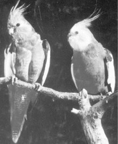 Nymphensittiche (Nymphicus hollandicus) mit deutlich sichtbarem Busch