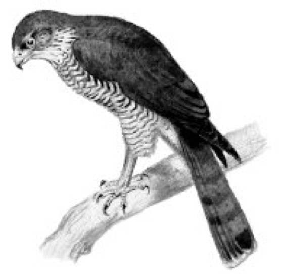 Sperberm, Accipiter nisus, 28–38 cm große Art der Habichte, mit rostroten Wangen und graubraun gebänderter Unterseite ( vgl. Abb. ). Habichte (Abb.); Europa X .