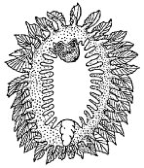 Spintherida [von latein. spinter = Oberarmreif], Ringelwurm-Ordnung der Polychaeta mit der einzigen Familie Spintheridae und der einzigen Art Spinther arcticus ( vgl. Abb. ); 1–9 mm lang, Körper breitoval und aus 12–24 Segmenten bestehend, Dorsalseite von Notopodien bedeckt; vordere Parapodien nach vorn, hintere nach hinten gerichtet; lebt auf Schwämmen, carnivor oder parasitisch; arktisch-boreal.