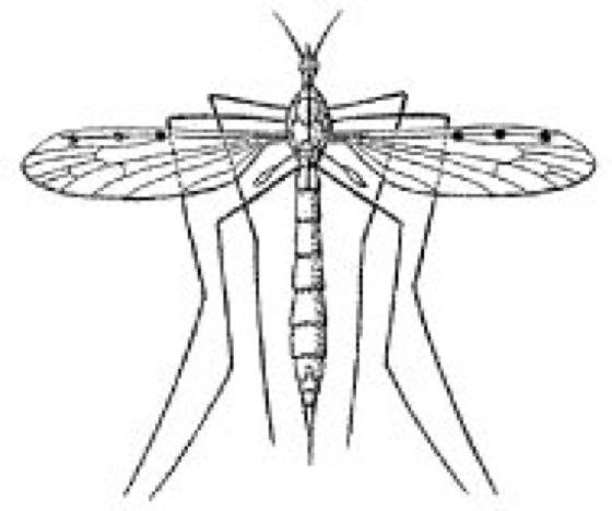 Stelzmücken, Sumpfmücken, Limnobiidae, Limoniidae, eine der artenreichsten (ca. 5000) Familien der Mücken; in Mitteleuropa etwa 200 Arten. Die mit den Tipulidae eng verwandten und in der Gestalt ähnlichen Stelzmücken ( ü vgl. Abb. ) sind 10–30 mm groß, es fehlen ihnen jedoch die peitschenförmigen verlängerten Kieferntaster. Auffallend sind die oft stark verlängerten Beine; die beiden Flügel werden in der Ruhe scherenartig über dem Hinterleib übereinandergelegt. – Die Stelzmücken-Larven unterscheiden sich in Gestalt und Lebensweise stark voneinander: neben rein wasserlebenden Arten gibt es Larven, die sich von zersetzenden Pflanzenstoffen in der Laubstreu oder von Wurzeln ernähren. Ein Beispiel für Kryobionten (Schneeinsekten) ist die Schneefliege (Schneemücke, Chionea spec.): die ca. 4 mm großen, stets ungeflügelten Imagines laufen mit langen, kräftigen Beinen im Winter auf der Erdoberfläche und auch auf Schnee. Ihr Temperaturoptimum liegt nahe beim Gefrierpunkt, sie sind aber auch noch unter –5 °C aktiv. Mit ca. 30 mm größte Art ist die Bachstelzschnake (Pedicia rivosa).