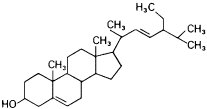 Stigmasterins [von Physostigma, griech. stear = Fett], Stigmasterol, ein erstmals aus der Kalabarbohne (Physostigma venenosum;Hülsenfrüchtler) isoliertes Phytosterin ( vgl. Abb. ), das auch in Mohrrüben (Möhre), Kokosfett (Kokospalme), Wachs, Zuckerrohr usw. vorkommt. Als Hauptsterin tritt Stigmasterin nur bei bestimmten Arten, z.B. Efeu und Sojabohne, auf. Stigmasterin dient als Ausgangssubstanz für synthetische Steroide.