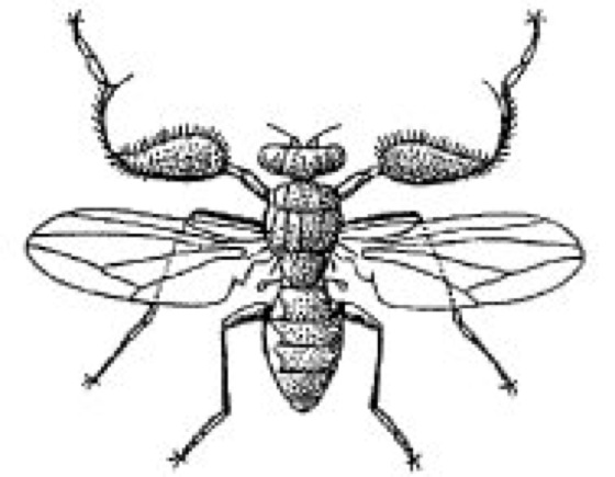 Sumpffliegen, Salzfliegen, Salzseefliegen, Uferfliegen, Weitmaulfliegen, Ephydridae, Familie der Fliegen mit ca. 1000 bekannten, meist tropischen und nordamerikanischen Arten, in Europa ca. 200. Die kleinen, unscheinbar gefärbten, feuchtigkeitsliebenden Sumpffliegen ( vgl. Abb. ) ernähren sich von Plankton, das sie mit dem Rüssel aufnehmen. Die Larven verschiedener Sumpffliegenarten weisen mannigfaltige Gestalten und Lebensformen auf: viele räuberisch oder von Algen lebende aquatische Formen können mittels spezieller Stigmen-Ausbildungen Luft aus Wasserpflanzen entnehmen. Oft massenhaft kommen andere Larven in Abwässern, faulenden Stoffen und Kadavern vor. Die Larven der Petroleumfliege (Psilopa petrolei) leben in Petroleum-(Erdöl-)tümpeln Nordamerikas und fressen kleine Insekten von der Oberfläche. Das in den Darm gelangte Erdöl wird durch die peritrophische Membran von der resorbierenden Oberfläche ferngehalten.