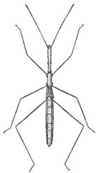 Teichläufer, Wasserreiter, Wasserstelzwanzen, Hydrometridae, Familie der Gerromorpha (Unterordnung der Wanzen) mit ca. 110 meist tropischen Arten, in Mitteleuropa 2. Sehr schlanke, ca. 3–22 mm lange, oft flügellose bzw. kurzflügelige Insekten mit dünnen, langen Beinen. Kopf-, Brust- und Hinterleibssegmente sind ebenfalls stark verlängert; die Augen liegen weit vor dem Vorderrand des ersten Brustsegmentes. Die Teichläufer laufen nur zum Nahrungserwerb (kleine Insekten) mit allen 6 Beinen (Wasserläufer i.e.S. mit 4) auf der Wasseroberfläche (Oberflächenspannung). Zum Ergreifen oder Festhalten der Beute werden im Gegensatz zu den Wasserläufern nie die Vorderbeine benutzt. Die langen, spindelförmigen Eier werden an Landpflanzen geklebt. Häufig ist bei uns in der Nähe stehender oder langsam fließender Gewässer der Teichwasserläufer (Hydrometra stagnorum; ä vgl. Abb. ).