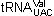 eine Valin bindende tRNA mit dem Anticodon UAC (hier U in der 3. Position), die entsprechend der Wobble-Hypothese mit den beiden Valin-Codonen GUA und GUG paaren kann. – Das Vorhandensein von tRNAs wurde in den 1950er Jahren erstmals von F. Crick vermutet. In den 1960er-Jahren gelang es R.W. Holley, die vollständige Sequenz einer tRNA zu ermitteln. – tRNAs können auch noch ganz andere Funktionen haben. So startet in Prokaryoten und Chloroplasten die Synthese einer Vorstufe der Porphyrinringe (δ-Aminolävulinsäure) mit Glutamyl-tRNAGlu. Bei Retroviren dient eine tRNA als Startermolekül für die reverse Transkriptase bei der RNA-abhängigen DNA-Synthese in der Wirtszelle. Adaptorhypothese, Biochemie (Geschichte der), Cysteinyl-tRNA, Holley (R.W.), Khorana (H.G.); – Transkription – Translation .