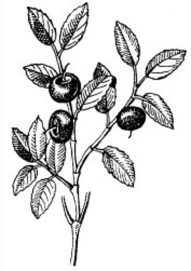 Heidelbeere (Vaccinium), fruchtender Zweig