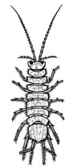 Wasserassel, Asellus aquaticus, Art der Familie Asellidae (Unterordnung Asellota), einzige oberirdisch lebende mitteleuropäische Süßwasser-Assel ( vgl. Abb. ). Alle Vertreter der Asellidae leben im Süßwasser; nur wenige Arten gehen auch ins Brackwasser. Charakteristische Merkmale sind das zu einem Pleotelson verwachsene Pleon und der zu einem Operculum gewordene Exopodit des 3. Pleopodenpaares, der die folgenden, als Kiemen fungierenden Pleopoden überdeckt. Die Wasserassel ist ein träger, bis 16 mm langer Bewohner nährstoffreicher, auch verschmutzter Tümpel, Teiche und Flüsse. Sie ernährt sich von in Zersetzung begriffenen pflanzlichen Geweben, z.B. Fall-Laub. Sie ist sehr zählebig, verträgt starke Verschmutzung, hohe und tiefe Temperaturen und kann sogar einfrieren. Vor der Paarung wird das wesentlich kleinere Weibchen vom Männchen in einer Praecopula (Kopulation) unter dem Bauch getragen. Andere Wasserassel-Arten leben u.a. in Nordamerika. Zahlreiche Asellidae sind Grundwasserbewohner (Stygobionten). So findet man in Mitteleuropa Asellus (Stenasellus) cavaticus in Höhlen und Brunnen (Höhlenassel).
