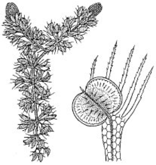 Wasserfalle, Aldrovanda, monotypische, in Mittel- und Südeuropa sowie Afrika und Asien bis Australien verbreitete Art der Sonnentaugewächse. Aldrovanda vesiculosa ist eine an der Wasseroberfläche schwimmende, wurzellose, carnivore Pflanze mit fädigen, sehr brüchigen, bis 15 cm langen Stengeln. Ihre in dichten, abstehenden Quirlen angeordneten Blätter sind an den Enden zu Klappfallen umgebildet ( vgl. Abb. ). Wie bei der eng verwandten Venusfliegenfalle (nach neueren [2002] genetischen Analysen sind Wasserfalle und Venusfliegenfalle Schwesterarten) führt die Berührung von sensiblen Borsten auf der Spreitenoberfläche dazu, daß ein Blatt zusammenklappt. Drüsen sezernieren proteinabbauende Enzyme, welche die Wassertierchen (kleine Insekten und Krebschen) verdauen. Die Wasserfalle wächst in nährstoffreichen, im Sommer sich erwärmenden, windgeschützten Wasserbuchten. Sie ist sehr selten und gilt in Deutschland nach der Roten Liste weitgehend als ausgestorben oder verschollen (außer in Berlin-Brandenburg, wo sie als vom Aussterben bedroht geführt wird).