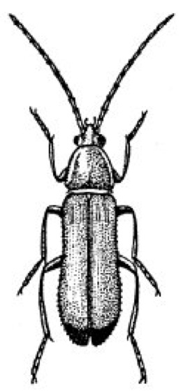 Weichkäfer, Cantharidae, Familie der polyphagen Käfer aus der Gruppe der Cantharoidea oder (früher) Malacodermata; mit zahlreichen Arten (in Mitteleuropa über 90) weltweit verbreitet. Längliche, schwach cuticularisierte, weichhäutige, oft bunt gefärbte Vertreter mit fadenförmigen Antennen. Die Käfer sitzen gerne auf Blüten (vor allem Doldenblütler), auf denen sie Nektar auflecken, aber auch andere Insekten jagen. Gelegentlich fressen einige Arten auch an frischen Trieben. Viele Weichkäfer sind auffällig gefärbt; sie besitzen dunkelblaue Elytren (Deckflügel), roten Halsschild, rotes Abdomen und Beine. Die Arten der häufigen Gattung Cantharis haben unterschiedliche Zeichnungsmuster auf dem Halsschild. Der Gesamtfärbung und dieser Zeichnung verdanken sie auch die deutschen Namen „Soldatenkäfer“ oder „Franzosenkäfer“ – bezogen auf die alten bunten Uniformen. Die Färbung stellt eine Warnung dar: die Arten besitzen abdominale Stinkdrüsen, die außerdem toxische Stoffe (Wehrsekrete) produzieren. Die Larven sind länglich, samtartig beborstet. Sie haben dolchförmige Saugmandibeln, mit denen sie andere weichhäutige Insekten aussaugen. An warmen Wintertagen können sie als sog. „Schneewürmer“ auf dem Schnee umherlaufen (Schneeinsekten). Bei uns im Frühjahr und Frühsommer allgemein verbreitet sind die Vertreter der Gattung Cantharis (ca. 30 Arten), 6–18 mm, die in der niederen Vegetation und auf Blüten sitzen. Im Hochsommer findet sich oft in sehr großer Zahl auf Schirmblüten die gelbrote Art Rhagonycha fulva (7–10 mm; ä vgl. Abb. ). Verkürzte Elytren mit gelben Spitzen haben die vielen Arten der Gattungen Malthinus und Malthodes, die vor allem auf Gebüsch sitzen und bevorzugt dämmerungsaktiv sind. pseudokone Augen; Insekten III , ä Käfer I .