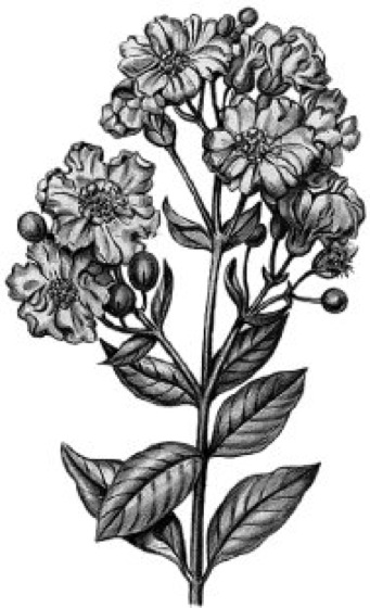 Weiderichgewächse, Lythraceae, vor allem in den Tropen, teils aber auch in gemäßigten Regionen verbreitete Familie der Myrtenartigen mit ca. 26 Gattungen und 580 Arten. Kräuter, Sträucher oder Bäume mit einfachen, ganzrandigen Blättern und meist radiären, staminokarpellaten Blüten. Diese bestehen aus 4 (6) Kelch- und Kronblättern, 8 Staubblättern und einem 2–6fächrigen, oberständigen Fruchtknoten, aus dem eine trockene Kapsel oder Schließfrucht hervorgeht. Wichtige Gattungen sind der Sumpfquendel(Peplis) und der Weiderich(Lythrum). Das überwiegend kleinwüchsige Köcherblümchen (Höckerblume, Cuphea; Myrtenartige ) mit etwa 260 Arten vom Südosten Nordamerikas bis Südamerika besitzt kleine Blätter und zahlreiche kleine Blüten mit einem röhrenförmigen, weiß, gelb, rosa oder rot gefärbten, 6zipfligen Kelch. Verschiedene Arten werden als Zierpflanzen gezogen, darunter das in kühleren Regionen als reichblühende Topfpflanze beliebte, dunkelrosa blühende Falsche Heidekraut (Cuphea hyssopifolia) und das Zigarettenblümchen (Cuphea ignea; Myrtenartige ), dessen orangefarbene Blüten eine schwarz und weiß gemusterte Spitze aufweisen. Aus der Gattung Lagerstroemie oder Kräuselmyrte (Lagerstroemia; 53 Arten; Tropen Asiens bis Australien; ä vgl. Abb. ) ist vor allem die ostasiatische, heute in den gesamten Tropen und Subtropen verbreitete Art Lagerstroemia indica bekannt. Der kleine, üppig blühende Zierbaum treibt lange Rispen weiß, rosa oder purpurrot gefärbter, gekräuselter Blüten. Die ebenfalls als Zierbaum beliebte, lilarosa blühende Art Lagerstroemia speciosa liefert auch ein wertvolles Holz und spielt in der Volksmedizin eine Rolle. Die einzige Art der Gattung Lawsonia (Nordafrika bis Südwestasien), der immergrüne Hennastrauch (Lawsonia inermis) mit lanzettlichen Blättern und weißen, rosafarbenen oder roten Blütenrispen, wird wegen seines roten Farbstoffs (Henna) angebaut.