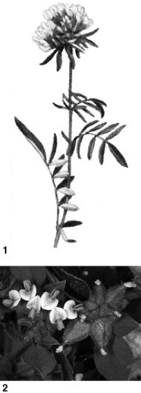 1 Gemeiner Wundklee, Tannenklee (Anthyllis vulneraria);2 Anthyllis tetraphylla, der mediterrane Blasen-Wundklee