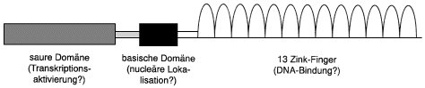 Schematische Darstellung der Domänenkomposition von ZFY-verwandten Proteinen. Die potentiellen Funktionen der einzelnen Domänen sind in Klammern angegeben.