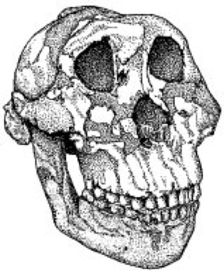 Schädel des Zinjanthropus boisei aus der Olduvaischlucht (Olduvai) in Ostafrika (Tansania)