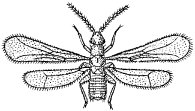 Zoraptera [von *zor- , griech. apteros = flügellos], Bodenläuse, Ordnung der Insekten mit nur 29–32 rezenten Arten in der einzigen Gattung Zorotypus in tropischen Gebieten, ähnlich den Termiten. Ihre Verwandtschaft ist unklar. Oft werden sie in die Gruppe der Schaben-Termiten-Ohrwürmer und Grylloblattodea (Notoptera) gestellt. Der meist farblose, ca. 3 mm lange Körper der Imagines kommt in geflügelten ( vgl. Abb. ) und ungeflügelten Morphen vor. Die Tiere treten oft in Gruppen auf, eine deutliche, mit Arbeitsteilung verbundene Kastenbildung fehlt jedoch. Der Kopf trägt 9gliedrige, perlschnurartige Fühler und beißend-kauende Mundwerkzeuge.Die 3 Brustabschnitte tragen je 1 Paar Laufbeine. Bei den ungeflügelten Morphen sind die beiden hinteren Brustabschnitte vereinfacht. Der breit an der Brust ansetzende Hinterleib besteht aus 10 gleichförmigen Segmenten. Aus den nach der Begattung abgelegten Eiern schlüpfen nach ca. 20 Tagen die augenlosen Larven, die sich hemimetabol zur Imago entwickeln. Die Kolonien der Bodenläuse befinden sich meist in Mulm alter Bäume, seltener im Boden oder unter Rinde. Sie leben u.a. von Pilzen und Milben. Insekten (Tab.), Paraneoptera.