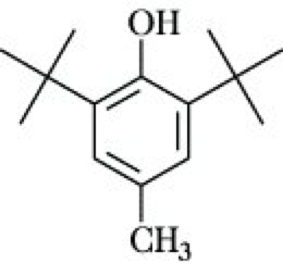 2,6-Di-tert-butyl-4-methylphenol, farblose Kristalle, F. 70 °C, Kp. 265 °C. Die Verbindung ist unlöslich in Wasser, löslich in Alkoholen und Kohlenwasserstoffen, Fetten und Ölen. 2,6-D. ist ein typischer Radikalfänger und wird deshalb vielseitig als Antioxidans verwendet, z. B. in der Lebensmittel-, Kautschuk- und Kunststoffindustrie sowie in der Petrochemie.