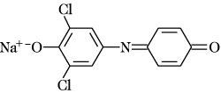 2,6-Dichlorphenol-indophenol-natrium, 2,6-Dichlor-N-(4-hydroxyphenyl)-1,4-benzochinonimin-natriumsalz, Tillmans Reagens, ein dunkelgrünes, wasser- und alkohollösliches Pulver. Die wäßrige Lösung ist tiefblau, bei Säurezugabe erfolgt Farbumschlag nach Rot. Man verwendet D. als Redoxindikator. Durch Iodid-Ionen, Ascorbinsäure und Cholinesterase wird es jeweils zur farblosen Leukoform reduziert. Darauf beruht z. B. eine wichtige Nachweisreaktion für Vitamin C.