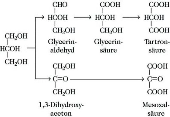 Glycerin. Abb.: Oxidationsprodukte des Glycerins.