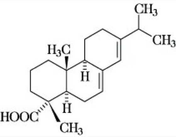 Abietinsäure, Abieta-7,14-dien-19-carbonsäure, eine tricyclische Diterpensäure. Sie bildet farblose Kristalle, F. 173 °C, die in Wasser praktisch unlöslich, in Alkohol und Ether löslich sind. Die Ester und Salze heißen Abietate. A. ist eine Harzsäure. Sie ist Hauptbestandteil des Coniferenharzes. Im Kolophonium ist A. zu etwa 43% enthalten. Sie wird technisch zur Bereitung von Papierleinen, Lacken, Seifen und als Emulgator bei der Herstellung von Synthesekautschuk verwendet.