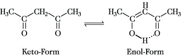 Acetylaceton, Pentan-2,4-dion, CH3-CO-CH2-CO-CH3, das einfachste aliphatische 1,3- oder β-Diketon. A. ist eine farblose, leichtbewegliche Flüssigkeit mit angenehmen Geruch; F. -23 °C, Kp. 140 °C, nD20 1,4494. A. ist in Wasser und den meisten organischen Lösungsmitteln gut löslich. Wie alle 1,3-Dicarbonylverbindungen unterliegt es der Keto-Enol-Tautomerie.