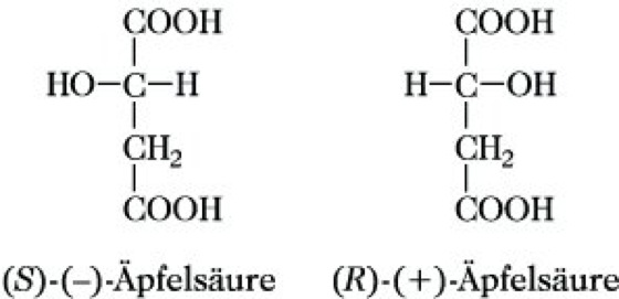 Äpfelsäure, Hydroxybutandisäure, Hydroxybernsteinsäure, HOOC-CH2-CH(OH)-COOH, eine Hydroxydicarbonsäure. Ä. kann in zwei optisch aktiven, enantiomeren Formen und in der Racemform existieren.