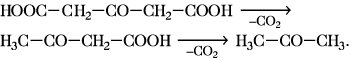α,α'-Acetondicarbonsäure, 3-Oxopentandisäure, β-Ketoglutarsäure, HOOC-CH2-CO-CH2-COOH, eine farblose, kristalline Verbindung; F. 135 °C (Z.). α,α'-A. zersetzt sich bei der Destillation. Sie ist in Wasser und Alkohol leicht, in Ether und Chloroform schwer löslich. Beim Aufbewahren zerfällt sie langsam in Aceton und Kohlendioxid. Beim Erhitzen oder in Gegenwart von Mineralsäuren, Metallsalzen oder Laugen erfolgt die Spaltung wesentlich rascher, wobei in allen Fällen die instabile Acetessigsäure als Zwischenstufe gebildet wird: