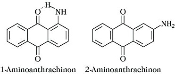 Aminoanthrachinone, Derivate des Anthrachinons, in denen ein oder mehrere am aromatischen Kern gebundene H-Atome durch Aminogruppen -NH2 ersetzt sind. A. sind farbige Verbindungen, die in Wasser schwer, in Alkohol und Ether leicht löslich sind. Die Herstellung der A. erfolgt hauptsächlich durch Reduktion von Nitroanthrachinonen oder durch Umsetzung von Halogenanthrachinonen bzw. Anthrachinonsulfonsäuren mit Ammoniak. A. werden als Ausgangsprodukte für Farbstoffe verwendet.