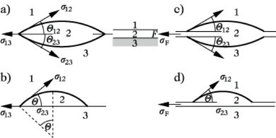 Es bedeuten σ die Grenzflächenspannung und Θ den Kontaktwinkel.