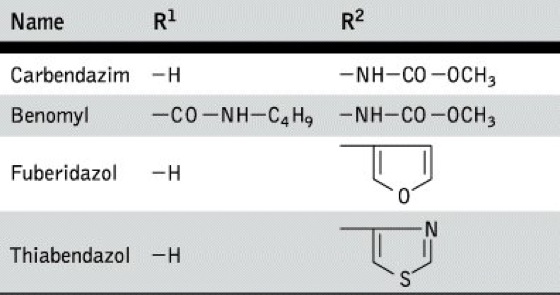 Benzimidazolfungizide. Tab.: Wichtige Beispiele.