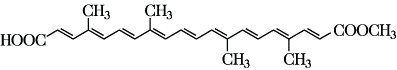 Bixin, 9-cis-6,6'-Diapo-carotin-6,6'-disäure-6'-methylester (E 160 b), ein zu den Carotinoiden zählender orangeroter Pflanzenfarbstoff. B. ist der Monomethylester von Norbixin; F. 198 °C. B. ist in kaltem Eisessig, Alkohol und Ether wenig, in siedendem Eisessig und Pyridin leicht löslich. B. wird aus den roten Samenhüllen des Rukustrauches Bixa orellana gewonnen und als Lebensmittelfarbstoff verwendet.