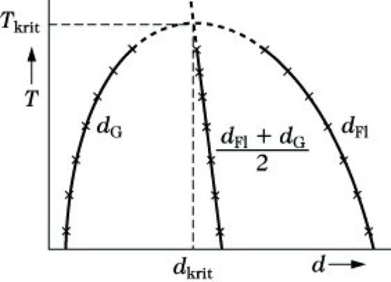 Cailletet-Mathiassche Regel. Abb.: Bestimmung der kritischen Dichte mit Hilfe der Cailletet-Mathiasschen Regel.