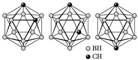 Carbaborane. Abb.: Strukturen der isomeren Dicarba-closo-dodecaborane.