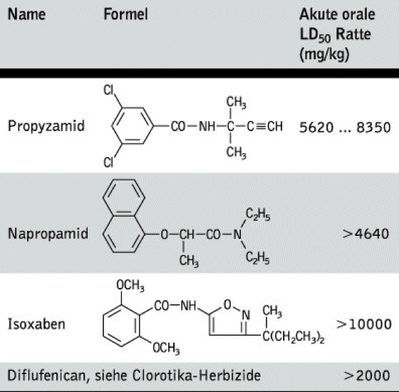 Carbonsäureamidherbizide. Tab.: Wichtige Beispiele.