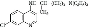 Chlorochin, ein basisch substituiertes 4-Aminochinolinderivat, das als Antimalariamittel und in der Langzeittherapie bestimmter rheumatischer Erkrankungen verwendet wird. C. wirkt vorzugsweise als Schizontenmittel und ist zur Malariaprophylaxe geeignet. Zunehmend treten bei bestimmten Malariaformen Resistenzerscheinungen gegen C. auf.