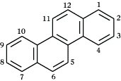 Chrysen, Benzo[a]phenanthren, ein kondensierter aromatischer Kohlenwasserstoff. C. bildet farblose, rotviolett fluoreszierende, rhombische Kristalle; F. 256 °C, Kp. 448 °C. Es ist unlöslich in Wasser, wenig löslich in Ethanol und Ether, löslich in siedendem Benzol. C. entsteht bei der trockenen Destillation von Kohle und bei der Pyrolyse von Fetten und Ölen. Es kann aus Steinkohlenteer isoliert und chromatographisch gereinigt werden. Synthetisch wird es durch Erhitzen eines Gemisches von Ethin und Wasserstoff auf 800 °C gewonnen. C. und seine Derivate gehören zu den cancerogenen Kohlenwasserstoffen.