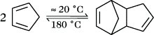 C. dimerisiert spontan bei Zimmertemperatur unter Bildung von Dicyclopentadien und ist in dieser tricyclischen Struktur ein gut handhabbarer, stabiler Stoff (F. 32 °C, Kp. 64 °C bei 1,86 kPa).