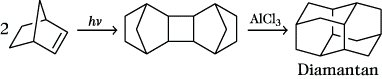 D. ist durch photochemische Dimerisierung von Bicyclo-[2.2.1]hepten und AlCl3-katalysierte Umlagerung des erhaltenen Dimeren zugänglich: