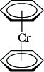 Dibenzolchrom, Bis(η6-benzol)chrom(0), [Cr(η6-C6H6)2], schwarze Kristalle; F. 285 °C. D. ist ein wichtiger Repräsentant der Metall-Aromaten-Komplexe und besitzt Sandwich-Struktur, wobei die parallel angeordneten Benzolringe "auf Deckung" stehen (Abb.): Man erhält es durch Umsetzung von Chrom(III)-chlorid, Aluminium und Aluminiumchlorid in Benzol und Reduktion des als Zwischenprodukt anfallenden Dibenzolchrom(I)-Ions [Cr(C6H6)2]+ mit Dithionit.