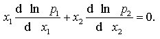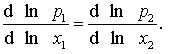 Dabei bedeuten x1 und x2 die Molenbrüche der beiden Komponenten in der flüssigen Phase und p1 und p2 die Fugazitäten im Dampf. Da x2 = 1 – x1, läßt sich die Beziehung umformen in