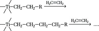 Der Mechanismus dieser Reaktion beinhaltet vor dem Einschub eine koordinative Fixierung des Monomeren an das koordinativ ungesättigte Titanatom des Katalysators sowie Bildung eines Vierzentrenübergangszustandes, aus dem heraus die Einschiebung erfolgt.