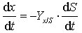 Dabei ist x = Zellmassekonzentration (in g Trockensubstanz/l), S = Substratkonzentration (in g/l) und dx/dt bzw. dS/dt die volumenbezogenen Raten der Zellmassezunahme und Substratabnahme.