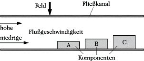 Feld-Fluß-Fraktionierung. Abb.: Schematische Darstellung.